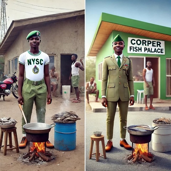 After camp, reality hit. His PPA didn’t pay anything. His N19,800 allawee was barely enough. One evening, sitting outside his lodge hungry and frustrated, he watched a woman frying fish by the roadside. Customers were lining up. The aroma, the crowd… the money.
