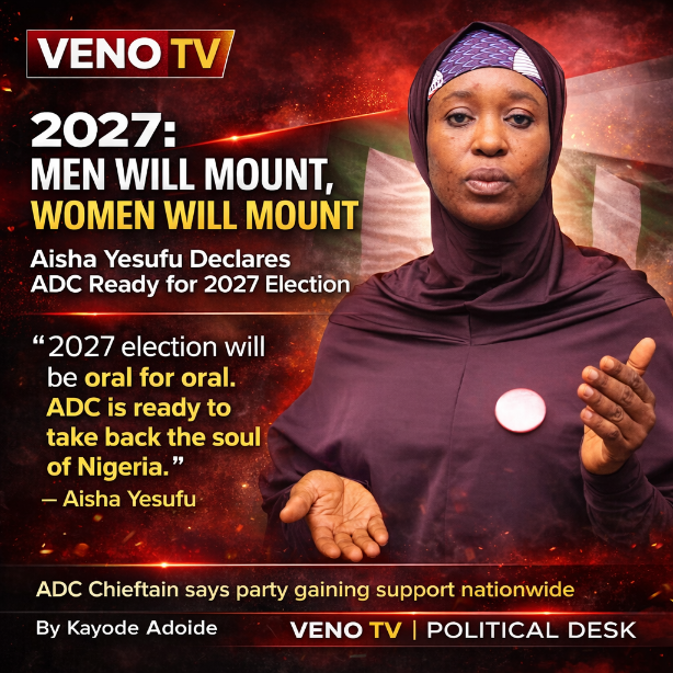 VENO TV: 2027 ELECTIONS “Men Will Mount, Women Will Mount” — Aisha Yesufu, ADC Chieftain Declares