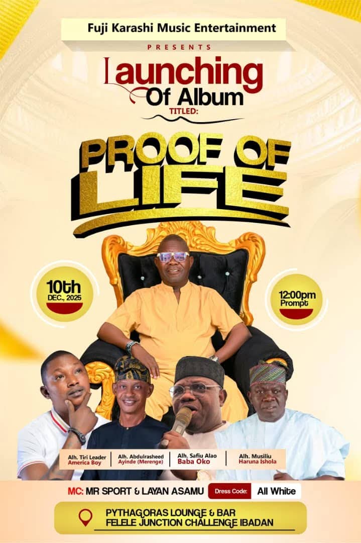 Fuji Karashi Music Entertainment announces with great excitement the official launch of a powerful new Fuji album titled “PROOF OF LIFE”, delivered by legendary Fuji icon Alhaji Wasiu Ayinla Olayori Karashi.
