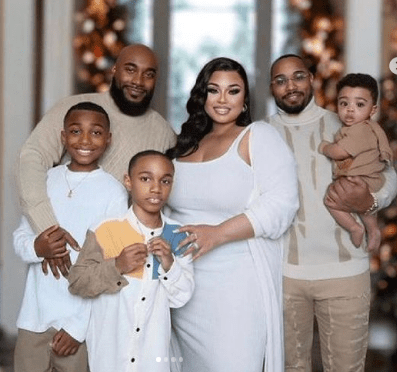 An American lady, Passion Jones, who is in polyandrous relationship, has sparked outrage online as she showed off her two husbands and the sons she has with each of them.