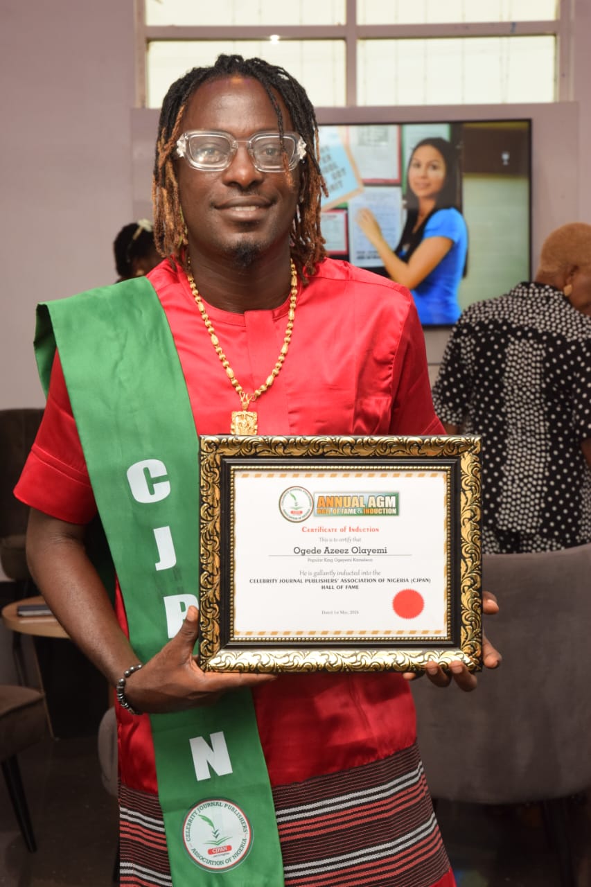 It was indeed an honour, well- deserved when Celebrity Journal Publishers Association (CJPAN) led by Alhaji Ola Mohammed inducted popular musician in entertainment industry in Nigeria, Mr. Ogede Azeez Olayemi fondly called King Kameleon into her Hall Of Fame on Wednesday.