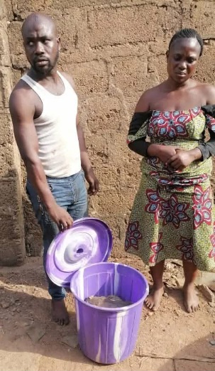 Oyeyemi said, “the couple were arrested following a report lodged at Kemta Divisional Headquarters by Chief Moshood Ogunwolu, the Baale of Leme Community, that one Pastor Adisa Olarewaju who is a co-tenant with the suspects informed him of offensive odours coming out from the room of the suspects”.